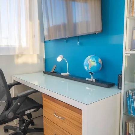 This apartment has a fully equipped kitchen, and comforts such as an air conditioner.